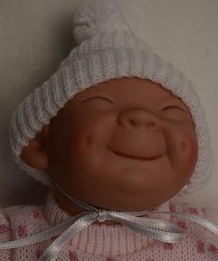 Postavička holohlavé holčiny s odstátýma ušima, která se usmívá jako Měsíček nenechá nikoho bez úsměvu. Je to panenka značky Magic Baby, která byla vyrobena ve Španělsku firmou Lamagik. Panenka je vysoká 23 cm. Tělíčko je látkové a hlavička a končetiny jsou z vinylu. Má modré oči, namalované obočí a široký úsměv, nemá vlasy. Panenka je oblečená v růžovém pleteném svetříku a podobných kraťasech. Na hlavě má bílého kulicha na zavazování a v ruce dečku. Panenka není balena v dárkové krabičce. Panenky firmy Magic Baby jsou jemně parfémované a každá má tiskopis rodného listu, který si můžete vyplnit. Panenka splňuje bezpečnostní a zdravotní normy (CE). Doporučeno pro děti od 3 let.