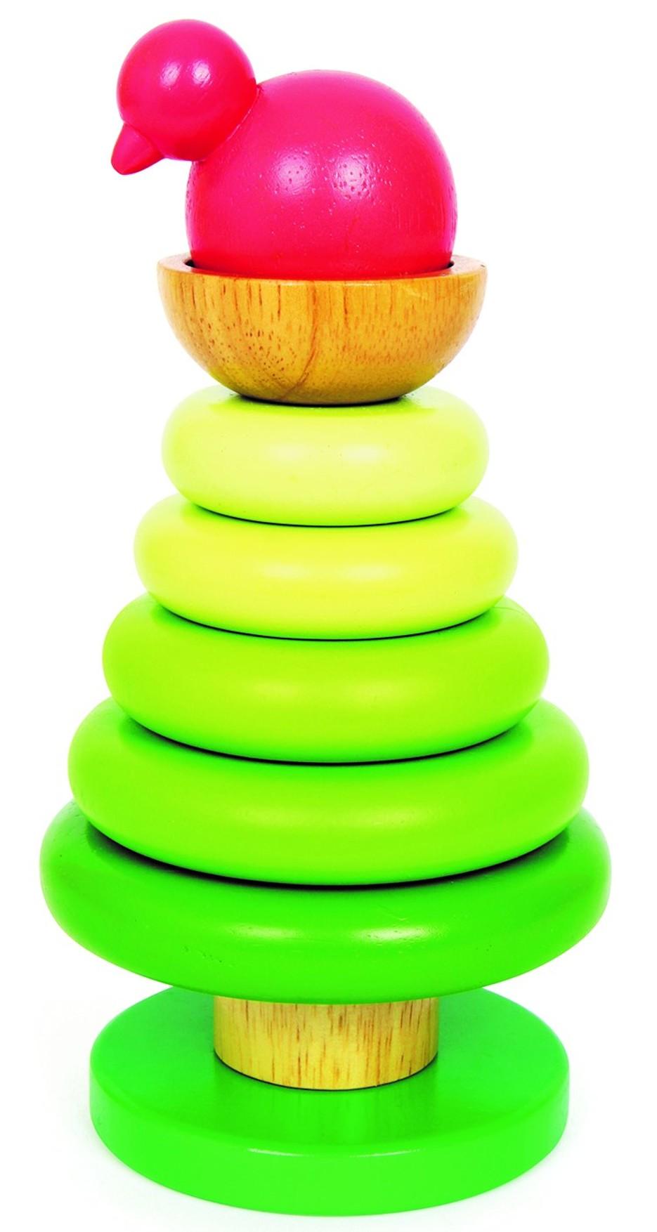 Tato pyramida se skládá z 9 částí, 7 dílů tvoří strom, 1 díl je hnízdo a poslední díl je ptáček. Jednotlivé části se nasazují na tyč, která není pevná, ale je dole držená gumou a při velkém sklonu kroužky vypadávají. Hračka podporuje vývoj jemné motoriky.
