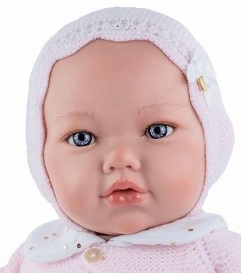 Krásné realistické miminko Alina je vyrobené ve Španělsku firmou Marina & Pau. Má měkké - látkové tělíčko, jen hlava, ruce a nohy jsou z vinylu. Je 45 cm dlouhé. Miminko nemá vlásky a má modré nemrkací oči.