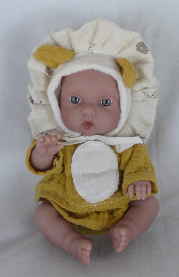 Panenka je oblečená do roztomilého kostýmku lvíčka, který jí dodává veselý a hravý vzhled.