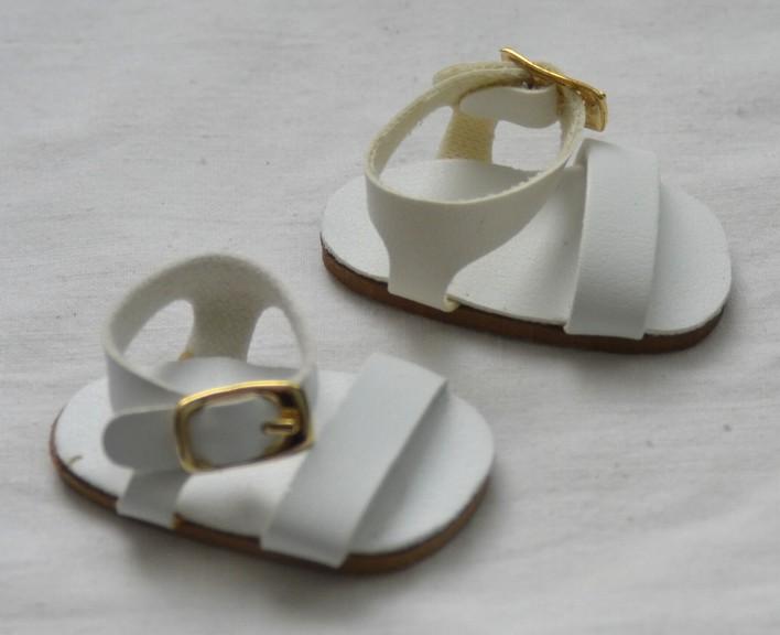 Bílé sandály se zapínáním na přezku pro panenky Paulina a její přátelé od španělské firmy Vestida de Azul. Panenky Paulina jsou 33 cm vysoké.
