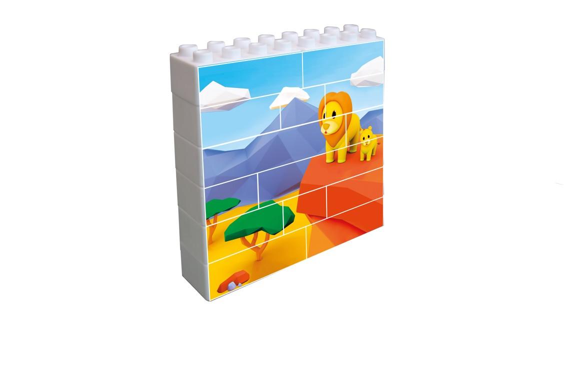 Vertikální plastové puzzle s motivem velkého lva a lvíčete. Skládá se ze 14 puzzlíků různých velikostí.