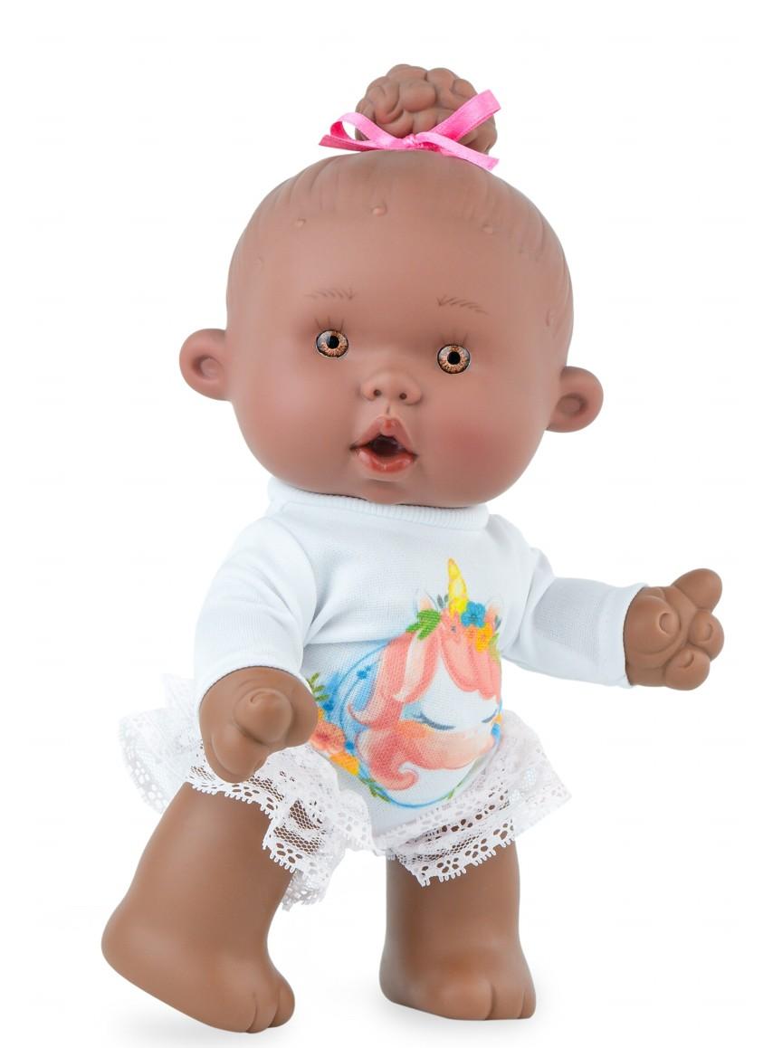 - Marina & Pau – realistická panenka snědá holčička 26 cm s "drdolem" malá parádnice