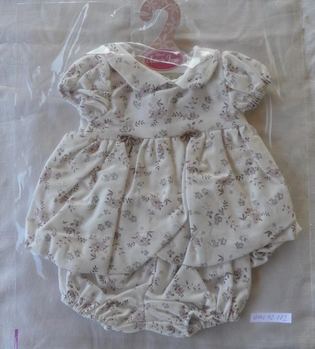 Obleček se skládá z bílých šatiček s drobnějším květinovým pastelovým potiskem a kalhotek stejné barvy.