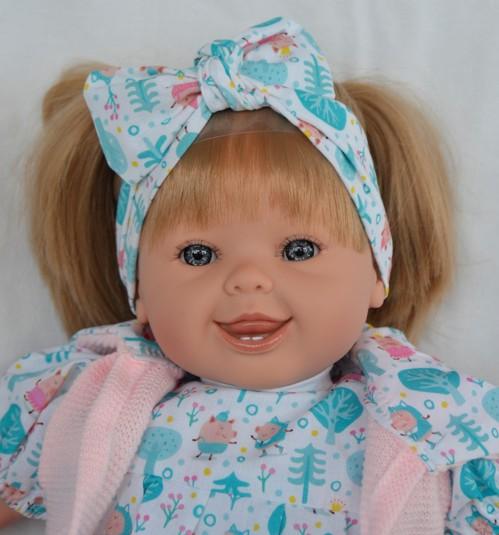 Realistická panenka Marika v šatech s roztomilými prasátky od španělské firmy Marina & Pau