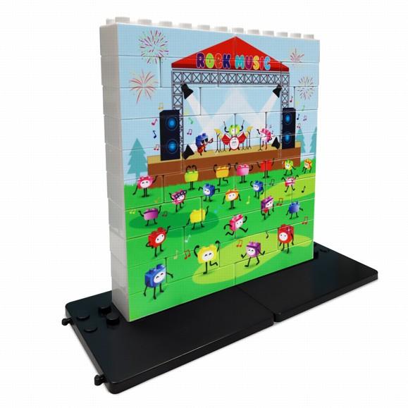 Vertikální plastové puzzle s motivem rockového koncertu. Skládá se ze 32 puzzlí různých velikostí. Stavebnice jsou z recyklovaného plastu a jsou baleny v recyklované krabičce.